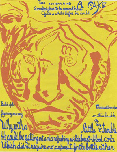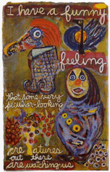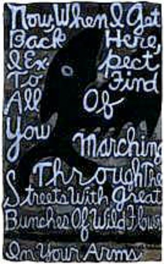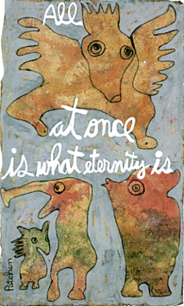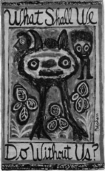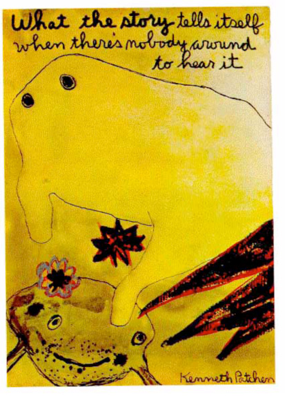 KENNETH PATCHEN was a novelist, poet, painter, recording artist, and passionate pacifist. Born in Ohio, he lived from 1911-1972, and early in his life earned a reputation as the “proletariat poet.” His many publications include The Journal of Albion Moonlight, Memoirs of a Shy Pornographer, Hurrah for Anything, Pictures of Life and Death, The Dark Kingdom, Cloth of the Tempest, Before the Brave, Poems of Humor and Protest, and Sleepers Awake. In 1937, a spinal injury left him nearly bed-ridden for most of his life, where from he wrote prolifically, created many of his famous picture poems, and collaborated on word/music hybrids, radio plays, and other recordings with the likes of John Cage and Charles Mingus. Patchen was a political radical and outspoken anti-war activist whose words reflected a fervent call for justice for all creatures on earth—often during times such as World War Two, when radical politics had not yet become part of larger counter-cultural movements. His work had a significant influence on the Beat Poets and other U.S. literary movements of the mid-twentieth century. Here, we pay homage to him by offering a humble selection of his picture poems, many more of which can be found in the collection What Shall We Do Without Us.